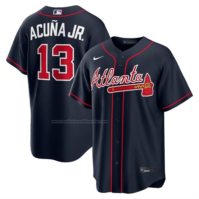 Camiseta Beisbol Hombre Atlanta Braves Ronald Acuna Jr Alterno Replica Azul