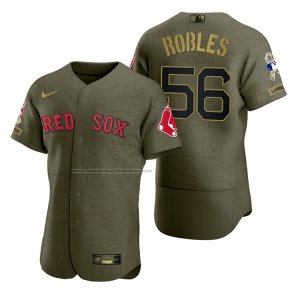 Camiseta Beisbol Hombre Boston Red Sox Hansel Robles Camuflaje Digital Verde 2021 Salute To Service