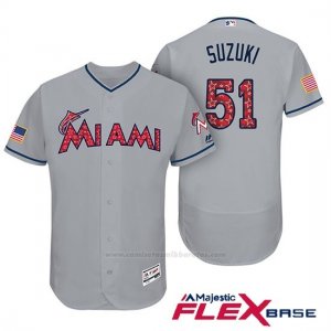 Inicio ::  Camisetas MLB Flex Base ::  Miami Marlins ::  Camiseta Beisbol Hombre Miami Marlins 2017 Estrellas y Rayas Ichiro Suzuki Gris Flex Base