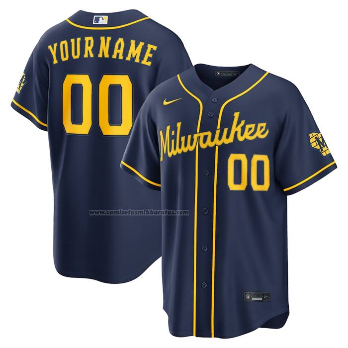 Camiseta Beisbol Hombre Milwaukee Brewers Alterno Stadium Personalizada Azul