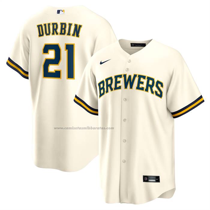 Camiseta Beisbol Hombre Milwaukee Brewers Caleb Durbin Primera Replica Crema
