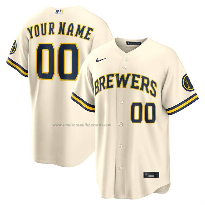 Camiseta Beisbol Hombre Milwaukee Brewers Primera Stadium Personalizada Crema