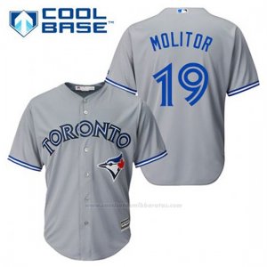 Camiseta Beisbol Hombre Toronto Blue Jays Paul Molitor 19 Gris Cool Base