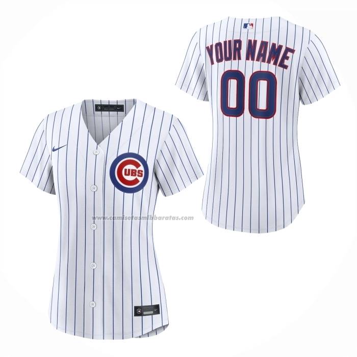 Camiseta Beisbol Mujer Chicago Cubs Primera Replica Personalizada Blanco