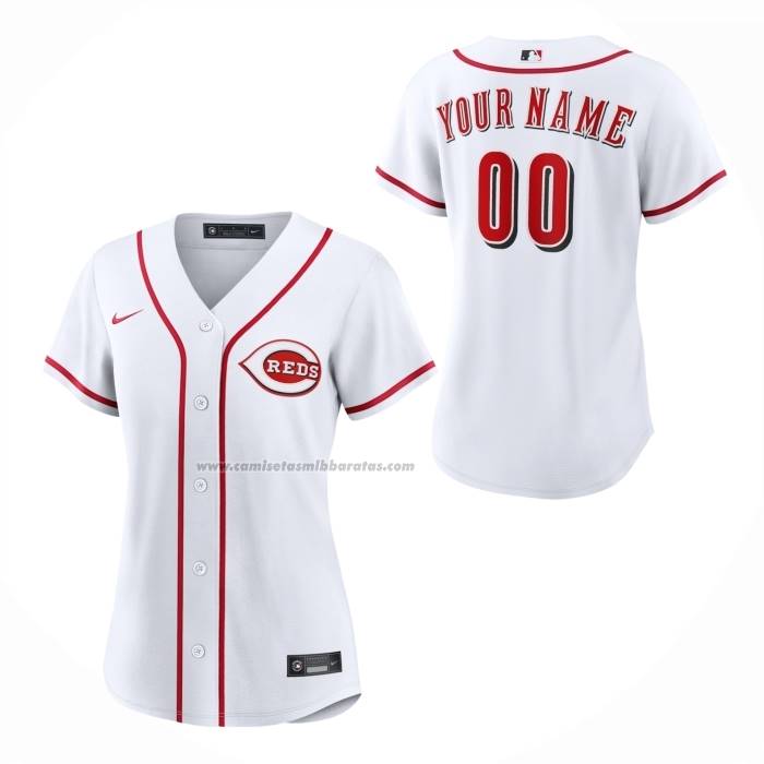Camiseta Beisbol Mujer Cincinnati Reds Primera Replica Personalizada Blanco