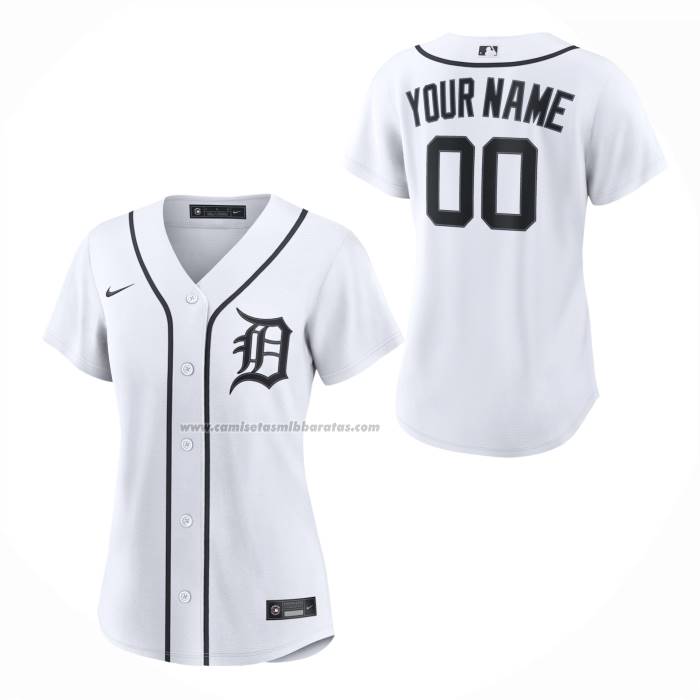 Camiseta Beisbol Mujer Detroit Tigers Primera Replica Personalizada Blanco