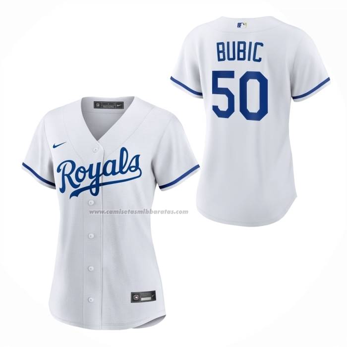 Camiseta Beisbol Mujer Kansas City Royals Kris Bubic Primera Replica Blanco