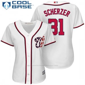 Camiseta Beisbol Mujer Washington Nationals 31 Max Scherzer Blanco 2017 Cool Base