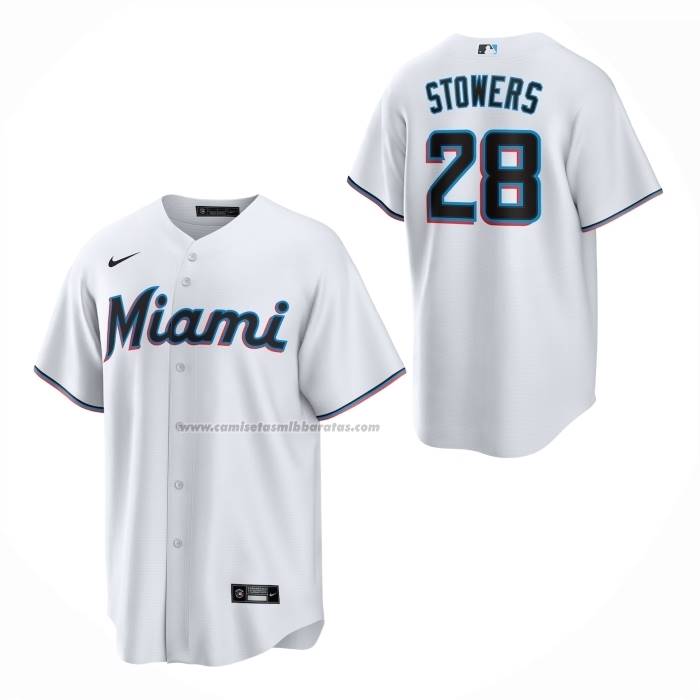 Inicio ::  Ninos ::  Miami Marlins ::  Camiseta Beisbol Nino Miami Marlins Kyle Stowers Primera Replica Blanco