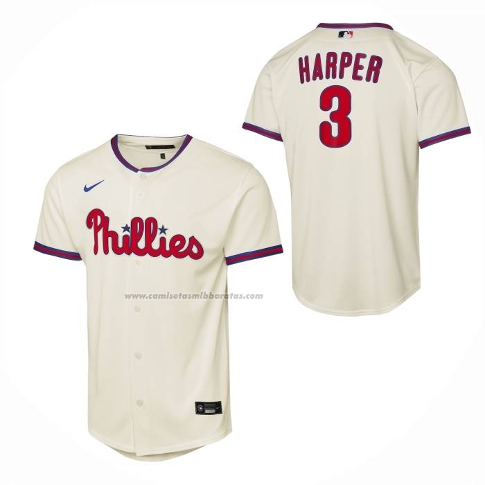 Camiseta Beisbol Nino Philadelphia Phillies Bryce Harper Alterno 2 Replica Crema